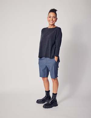 Our Wellesley sweater stands as a timeless essential, ideal for year-round wear. Its classic close-fitting silhouette exudes sophistication, effortlessly transitioning from office to evening affairs. Versatile and chic, it features bracelet sleeves. Pair it with our Elizabeth Slate Blue Pinstripe trousers & Bow Blouse for a chic and polished ensemble and a pair of tailored shorts for an edgier look. Designed to fit closely at the shoulders, skim the bust and arms, and flare out slightly at the waist and hips, this sweater offers an elegant fit that allows for ease of movement The shorter length and bracelet sleeves elevate this knit, making it perfect for transitioning between seasonslong enough to keep you warm, short enough to keep you cool. Also available in Amethyst, Black, Emerald and Espresso Styled with Elizabeth Slate Blue Pinstripe trousers & Bow Blouse + Elizabeth Slate Blue Pinstripe Slate Blue Short If you are a fan of the Laura Crew Neck and the Disco Glitter Bracelet Sleeve Top, you will absolutely love the Wellesley Sweater PRODUCT DETAILS - 100% Italian spun Merino Wool - Easy fit - Single jersey fully fashioned knit - Crew neck with with elegant rib knit finish - Rib knit hem band and sleeve cuff - Hip Length Body - Bracelet Length sleeves - A slight hi-lo hem - Designed in Australia SIZING & FIT Designed for a easy fit, to be worn close to the body with a slight Aline silhouette, giving a little more room at the hips. Our model Zerin is 54.5 tall, and is wearing a size S Her measurements, Bust: 35.5, Waist: 29.5, Hip: 33.4, Bicep: 9.5 Measurements below are of garment laid flat: SIZE XS (0-2): Chest: 18.3', Hem: 24.4", Front: 22.8" , Back: 26.8", Sleeve length: 18.3" SIZE S (4-6): Chest: 19.3', Hem: 25.4", Front: 22.8" , Back: 26.8", Sleeve length: 18.7" SIZE M (8-10): Chest: 20.3', Hem: 26.4", Front: 22.8" , Back: 26.8", Sleeve length: 19.1" SIZE L (12-14): Chest: "3.12, Hip: 17.4", Front: 22.8", Back: 26.8" Sleeve length: 19.5" Quick Tip: Use your favorite well-fitting knit or dress to measure across the bust, hem, hip, and length. Compare these measurements with the ones provided below to ensure the perfect fit. FABRICATION & CARE 100% Italian spun Merino Wool Dry Clean Only MERINO WOOL: NATURE'S LUXURY FABRIC Merino wool is more than just a cozy and warm fabric. This extraordinary material embodies nature's magic, from its natural ability to combat odors and regulate temperature to its flame-retardant properties and professional-grade moisture-wicking capabilities. As one of the most sustainable natural fibers, Merino wool is both renewable and biodegradable, offering self-cleaning properties and moisture-wicking features ideal for year-round wear.
