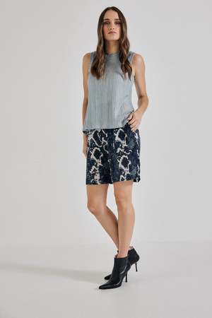 Shimmer your way into your day with the Laura Sleeveless Crew in elegant Ice Blue. Using the shape from our best-selling crew neck jumper, combined with a new ribbed fabrication, this is the next era for the classic LiNNY staple. With a graceful drape in an icy blue shimmer shade and subtle glitter, this piece takes a classic silhouette and elevates it with a modern twist. With a slight stretch in the fabric, our crew sits lightly snug across the bust, then flutes out in the torso for a silhouette that is both comfortable and polished. Finally, the sleeveless cut shows off your shoulders (but not your bra straps) and works as well as an under layer as it does as the star of the (fashion) show. Details: - Made in Melbourne, Australia - Fabric: 95% Polyester/ 5% Elastine - Sizing: XS (0-2), S (4-6), M (8-10), L (12-14) - Hits at hip, slightly shorter in front and longer in back - Model is 5' 8 1/2" tall and is wearing a size Small - Care: Hand wash separately and lay flat to dry