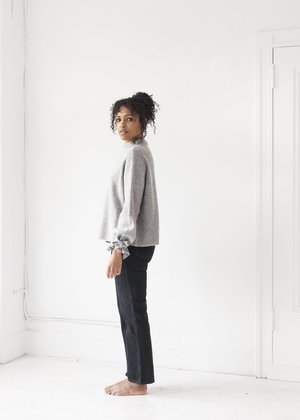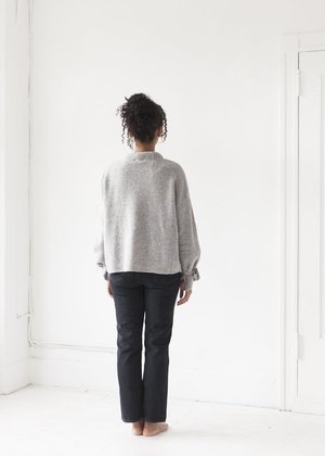 - Line Knitwear - Genevieve in Greystone - Mockneck with bow detail at wrists - 51% Acrylic, 43% Nylon, 6% Spandex - Dry clean only