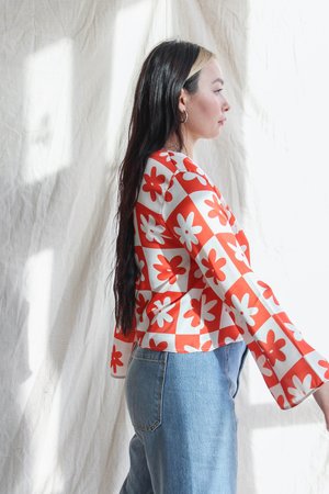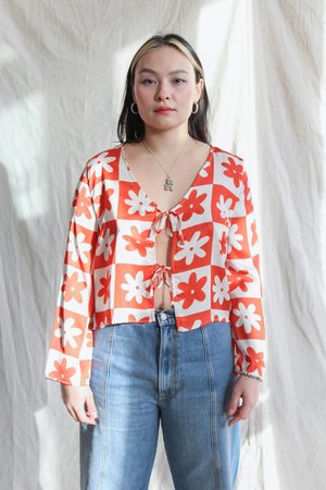 This 70's-inspired cropped blouse is made of 100% Satin Polyester in KJP's classic daisy check. Lisa Says Gah is a laidback, playful clothing line made ethically in San Fransisco, California.
