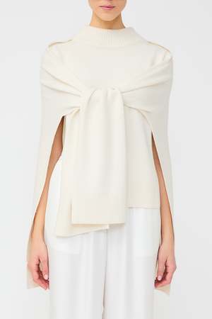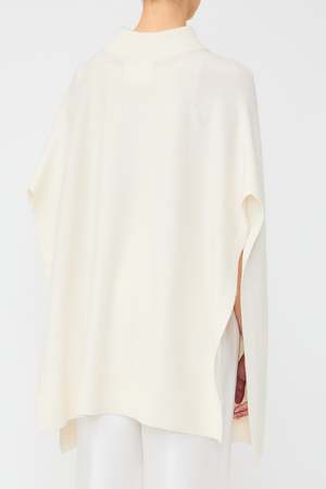 High neck cape with fully fashioned details, ribbed hem and trims. 7 GG 2 PLY plain knit.