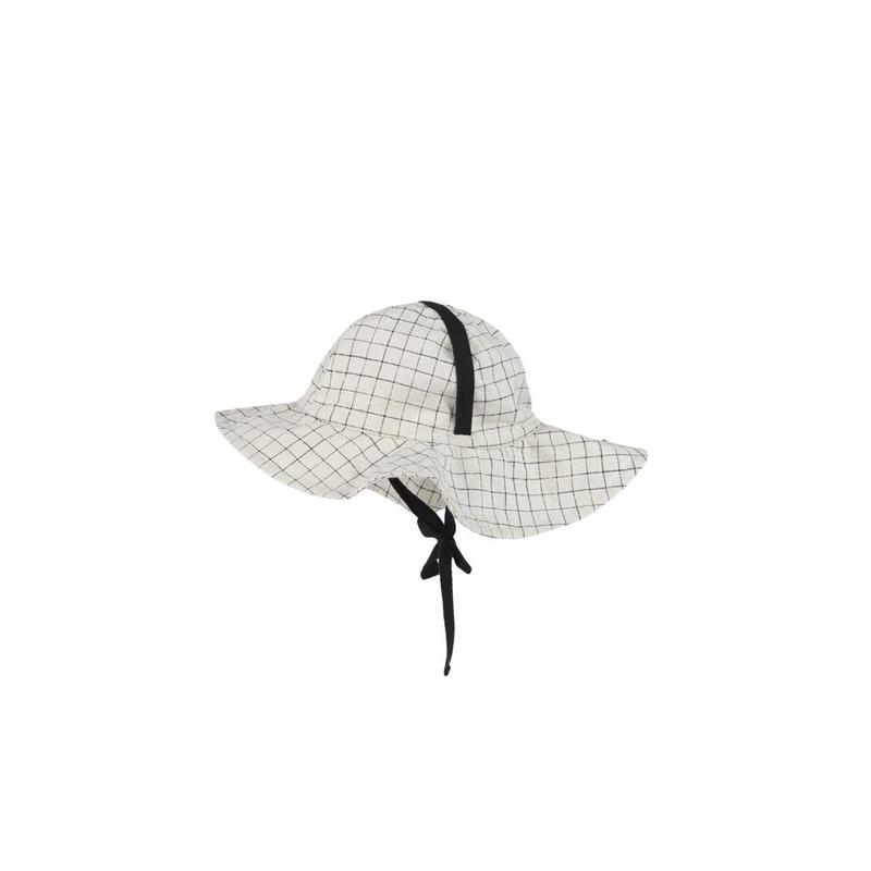From Little Creative Factory 'Wabi Sabi' Spring/Summer 2019 collectsion. Sun hat for baby in a grid printed cotton. Wide, flared brim. Black twill tie. - Unisex baby hat - 100% cotton - Color: Checked - Rounded upper - Extended flared brim - Contrast chin tie - XXS fits 0-1Y - XS fits 1Y-2Y