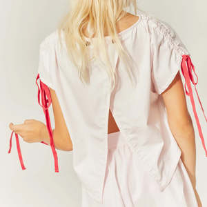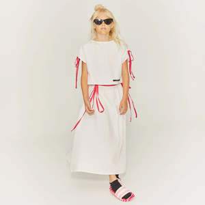 Little Creative Factory is a manufacturer of big dreams, committed to creating an experience that goes beyond the notion of getting dressed and helps kids develop their own personal expression and confidence. Crafting playful and timeless garments for kids and teens from their Barcelona hub, they source all materials locally and sustainably to create collectsions that are romantic with an edge of street style. - Cotton top - Fuchsia bow embellishments on each sleeve - Back crossed buttoned closure - Short sleeves 100% Cotton Machine wash cold. Do not bleach, iron, dry clean or tumble dry.