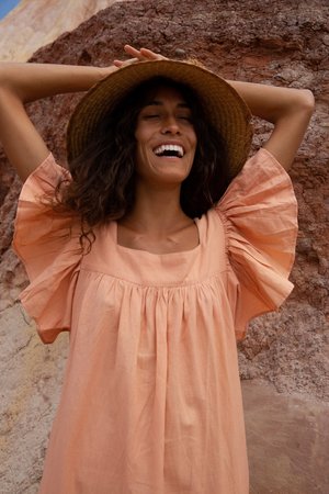 PRE ORDER: SHIPPING LATE MAY Margot epitomises Little Tienda style. A throw on frock that does all the work for you. She will make you feel ready to roll, she is the right amount of fun and frisky, yet completely sophisticated. Pockets both sides, plus tie belt included Made from 100% Flax Linen, Hand-Dyed using low-tox dyes Designed in Australia and Made in India Lay flat or hang dry. For all block printed and hand dyed garments, please do so away from direct sunlight. To maintain your garments original colour, we recommend drying your garment inside your home away from direct sunlight. If you are line drying outside, please do so in a shady area.