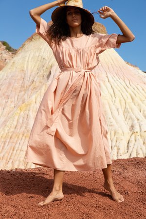 PRE ORDER: SHIPPING LATE MAY What started as a sketch of my ultimate house dress turned into Simone and her twin sister Aurelie. Simone is perfectly made to spend the days at home. Made from the softest organic cotton, with pockets to fill and a super relaxed oversized fit. Simone is as always functional and crafted with such care. I created just two sized because she is unapologetically simple and perfect. She is ultimate comfort. Small / Medium to fit 6-12 AU Large / XLarge to fit 14-20 AU Made from 100% Organic Cotton, Hand-Dyed with low-tox dyes Designed in Australia and Made in India Lay flat or hang dry. For all block printed and hand dyed garments, please do so away from direct sunlight. To maintain your garments original colour, we recommend drying your garment inside your home away from direct sunlight. If you are line drying outside, please do so in a shady area.