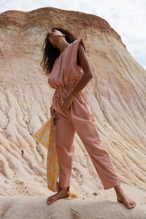 Designed to be the jumpsuit you wear all year round, Olivia is a gorgeous shape and style. With buttons down the front, plus an internal tie waist, you can wear this piece however pleases you in the moment. Breastfeeding friendly and super duper easy to wear. Made from 100% Organic Poplin, Hand-Dyed with low-tox dyes Designed in Australia and Made in India Lay flat or hang dry. For all block printed and hand dyed garments, please do so away from direct sunlight. To maintain your garments original colour, we recommend drying your garment inside your home away from direct sunlight. If you are line drying outside, please do so in a shady area.