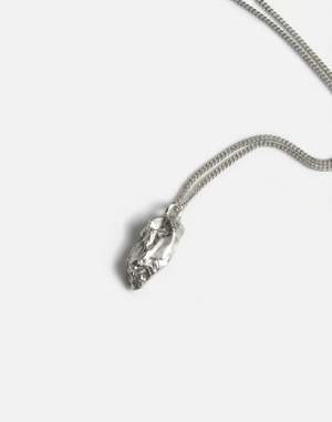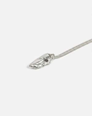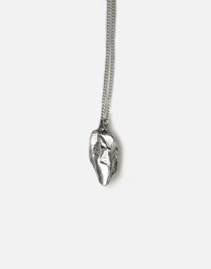 Sterling silver sculptural pendant inspired by raw rock formations. Obsidia captures the strength and irregular beauty of natural stone in a refined, wearable form. Its textured, organic surface reflects light subtly, creating depth and dimension from every angle. The chain and pendant are in sterling silver. Pendant measures approximately 1 1/16". Chain length: choose 20" or 24" (approximately 50 cm or 61 cm). Also available in gold plated and brass. Each item is handmade; therefore, the color, texture, or tone of the jewelry may vary slightly from the images. Crafted in New York. Ships within 13 weeks. In-stock items ship within 5 business days. Silver sculptural pendant necklace inspired by raw stone. Minimalist unisex jewelry handcrafted in New York by llayers.