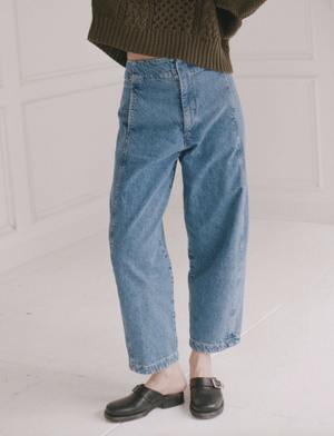 Super cool denim pant in the perfect fit to be dressed up or down. 0- waist 26", 43" hip, 14" rise, 26" inseam 2- waist 27", 43" hip, 14.5" rise, 27" inseam 4- waist 28", 45" hip, 14.5" rise, 27" inseam 6- waist 29", 48" hip, 14.5" rise, 27" inseam 8- waist 30", 50" hip, 14.5" rise, 27" inseam 100% BCI Cotton Made in USA.