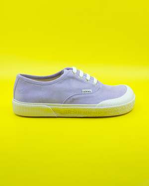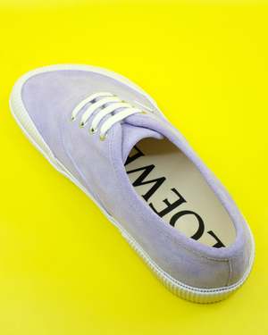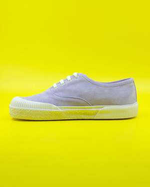 Suede lace-up sneaker on a vulcanized rubber sole featuring a bulky and asymmetric wide fit toe shape. Calf Leather / Rubber True to Size, Take Your Normal Size.