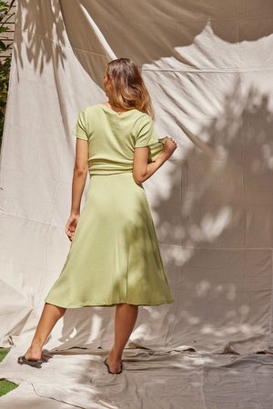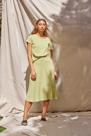 The Rib Skirt is a classic circle skirt made from GOTS certified Japanese organic cotton. This style features an elastic waistband for maximum comfort and finishes mid-calf. Pair with our Rib Tank for a sophisticated tonal look, or our Direction Shirt to add some texture. Available in Beige, Pistachio and Cream Product Story MAKE - Maker: CGT - Location: Brunswick, VIC, Australia FABRIC - Supplier: Shin Shouten - Composition: Organic Cotton - Origin: Japan ELASTIC - Supplier: MRECHT - Location: Melbourne, Australia - Composition: 100% Nylon - Origin: China THREAD - Supplier: Mrecht - Location: Melbourne, Australia - Content: 100% Polyester - Origin: China BRAND LABELS - Supplier: Avery Dennison - Location: Hong Kong - Content: 100% Recycled Polyester CARE + SIZE LABELS - Supplier: Fujian Baoliyahui Garment Accessories Processing Factory - Location: Fujjan, China - Content: 100% Cotton INFO LABELS - Supplier: Britannia packaging - Location: England , UK - Content: 100% GOTS certified Organic Cotton - Origin: Woven in India SWING TAGS - Supplier: Print Together - Location: Melbourne, Australia - Content: Printed on 100% post consumer paper using Vegetable based inks. MAILERS - Suppliers: QIS packaging - Location: Archerfield, QLD, Australia - Content: Kraft paper with shredded recycled newspaper for padding BRAND STICKERS - Supplier: Print Together - Location: Melbourne, Australia - Content: Printed on Kraft Paper using 100% vegetable based inks. IMAGE - Photographer : Ryan Wheatley - H&MU: Casey - Location : Bushrangers Bays, VIC - Model : Juliette (Duval Agency) Sizing Juliette wears a size 6 in the Rib Skirt and her measurements are: Height: 172cm Bust: 30A Waist: 89cm Hips: 89cm Garment Flat Lay Measurements: Coming soon