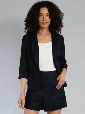 Experience ultimate comfort with our Stretch Linen Shorts. Crafted from a lightweight and breathable linen blend with added stretch, these shorts offer exceptional comfort and flexibility for all-day wear. The classic patch pockets add a touch of casual style and practical usage. Perfect for warm weather adventures or relaxed weekends, these shorts are a must-have for your wardrobe. Enjoy the laid-back elegance of linen with the added comfort of stretch. DESIGNER ID: P4286 COLOR: NAVY COMPOSITION: 49% Linen, 36% Lyocell, 12% Cotton CARE: Machine wash delicate FIT: Runs true to size Imported