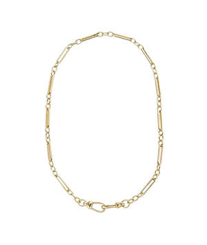 Introducing the Liam Watch Chain Necklace. This vintage-inspired chain necklace is heavily gold-plated and designed to be personalized with your favorite charms. Featuring a unique trombone chain and double clasp front closure, this necklace offers versatile styling options. Tarnish-resistant 14k gold-plating that is long-lasting with proper care. Double watch-chain carabiner front clasps. Designed for charms. 17" long x 26" long. Nickel- and lead-free.