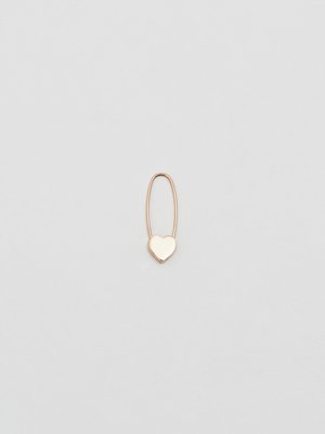 Pretty in punk. This delicate Heart Safety Pin Earring cast in 14 karat recycled gold is the perfect amalgam of feminine and masculine vibes. Wear it to dial up the charm on menswear-inspired ensembles. - 14Kt Yellow Gold Heart Safety Pin Earring - Length: 23mm - Width: APPROX 4.5mm - Sold as Single - Made in L.A.