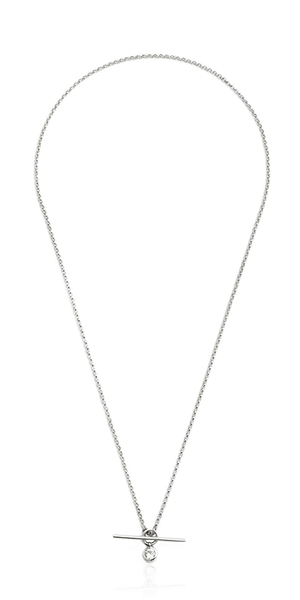 This slim silver chain features a dangling round white topaz & front toggle closure, giving the classic charm necklace style a delicate, modern polish. Details: - Sterling Silver chain - Length: 16" - 4mm Round White Topaz, 0.27ct - Mined in Brazil, Cut in India, Made in L.A.
