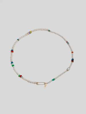 Psychedelic Opals & Pearl Strands, in the form of a multi-wrap necklace, single strand choker or bracelet. Freshwater pearls mix in bright opals of multiple colors, highlighted with 14Kt gold caps and beads and a polished signature safety pin closure. At once playful, elegant, and collectsed as if all the components were found remnants from an ancient civilization. - 14kt Yellow Gold Opal & Pearl Safety Pin Choker - Assorted 14kt gold beads throughout - Assorted Opal Beads: 4mm, Dyed (5.3ct) - Mined in Australia, Cut in India - Freshwater Pearls: 3-4mm - Mini Safety Pin Closure: 16mm - Length: 15 - Made in L.A. - Globally Sourced Materials