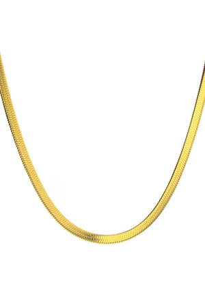 The Kennedy Chain is a smaller version of our Avery chain. It features a classic flat snake chain design with a shiny finish and an adjustable length of 16"-18". Available in gold plated only.