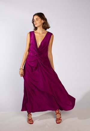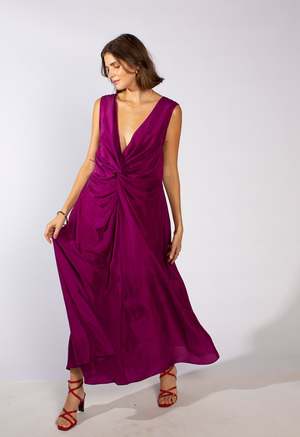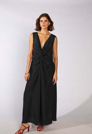 New for Spring Summer '25, we're welcoming the Gillian Dress. This body grazing A-line silhouette features a loose knot detail in the front & back creating a low cut V in the front & back for the perfect sensual summer look. This style is part of our Spring Summer '25 Pre-sale & will Ship between March 15-April 1 - "V" front & back neckline - Side seam pockets - full length hem