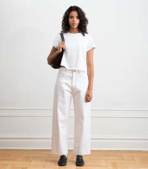 The Jamie Barrel Leg Jeans from Loup offer the relaxed, slouchy fit you're looking for, with Loup's signature fitted waist and hip. Featuring a barrel leg and red stitching details. Made from washed denim with a little stretch. Details: 98% Cotton, 2% Spandex Zip fly Pre-washed Machine washable.