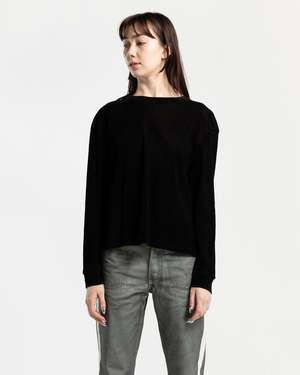LUKEWARMPEOPLE Mesh Long Sleeve T-Shirt The Mesh Long Sleeve T-Shirt is crafted from a breathable chinlon fabric that has a touch of translucency and features a slight crop and an ample neckline for a relaxed drapey fit. - 100% Chinlon. - Made in China. - Machine wash cold, hang to dry. - LPSS23021BL. Jocelyn is 6'0 (183cm) and is wearing a size S.