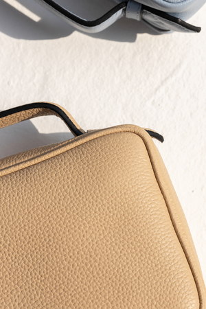 The Miller features our signature frame construction in 24k gold-plated stainless steel with double latch closure. It can be worn as a clutch or as a top handle bag. The interior has seven card slots for credit cards, cash and subway tickets. Miller comes in our LWG gold-rated German calf leather and is lined in midnight ultrasuede. Our logo2 is gold-embossed on the back. - Miller comes in Brandon, our signature LWG gold-rated pebbled calf leather. Tanned in Germany. - Custom frame is in 24k gold-plated stainless steel. Made in Germany and Italy. - Custom studs in 24k gold-plated brass. Made in Italy. Exterior Dimensions: 18cm x 12.5cm x 5.5cm | 7" x 5" x 2.25" Interior Dimensions: 17cm x 11.5cm x 5cm | 6.75" x 4.5" x 2" Miller is handmade consciously in Germany by small family businesses.