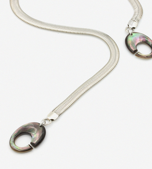 Pearl Agogo interlocking python necklace in sterling silver. A sophisticated piece to wear day to night. -Sterling Silver 925 -Pearl lock -16 3 / 4 Inches long -Made In NYC -Handcrafted