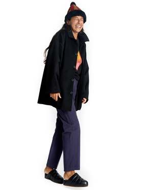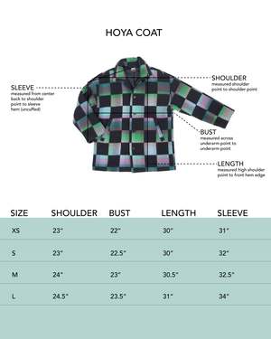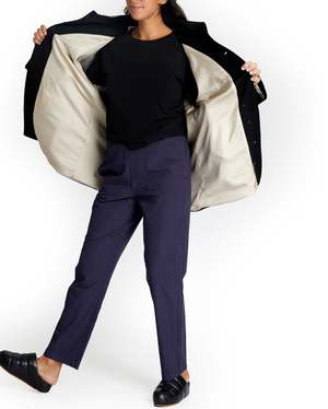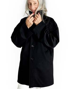 Sometimes we get lucky. We found this gorgeous Loro Piana Wool Cashmere in a deadstock warehouse downtown and couldnt wait to put it in our favorite oversized caban silhouette. The fit is oversized with drop shoulders and two front jet pockets. Clean luxe 90s minimalism at its best. Get the few we made while you can and channel your best Carolyn Bessette Kennedy revival look. Deadstock Loro Piana, imported from Italy. 80% wool, 20% cashmere. Lining is re-claimed 100% Cupro. Buttons are heal horn. Bianca, Paz and Alex wear size S: 31" length, 46" chest.