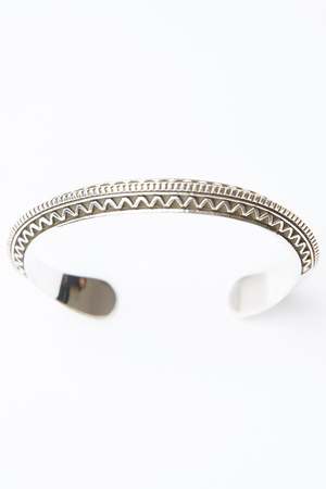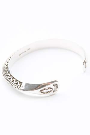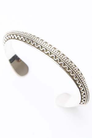 Triangle Design 0.37" Cuff Width 1.34" Opening Widest Diameter - 2.67" Sterling Silver Hand-Stamped Dine (Navajo) Made Made in USA The style that Lyle Secatero creates can be best described as handmade, stamped, traditional and contemporary, Navajo sterling silver jewelry. Lately, Lyle's jewelry has been selling out at the country's best Indian Art Shows, so now you'll be able to order any time from the items here on this website. Lyle Secatero has been chosen "Who To Know Right Now" by Indian Market Magazine 2018.
