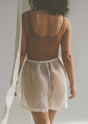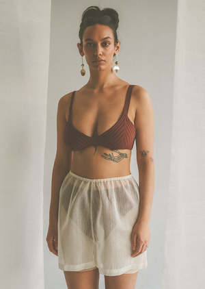 DESCRIPTION Lounge shorts. Elastic waistband. Mid to high rise with a loose fit. Available in a plain or checkered pattern weave. Unisex. 50% pia, 50% silk. SIZING & MEASUREMENTS Measurements are taken flat. S: waist 12" / rise 13" / length 15" M: waist 13" / rise 14" / length 16" L: waist 14" / rise 15" / length 17" XL: waist 15" / rise 16" / length 18" Nadine (image 1) is 5'3" with a 25" waist and wears a size small. Tomy (image 4) is 5'10" with a 26" waist and wears a size medium. Eden (image 7) is 5'10" with a 25" waist and wears a size medium. ABOUT THE MAKERS & ABOUT PIA Since 1996, La Herminia Pia has been a steward of pia weaving in Aklan, Philippines (western Visayas) and has kept the tradition in its founding family for generations. Pia fabric is uniquely derived from the inner layer of pineapple plant leaves. With several fields of red bisaya (pineapples) at their Aklan base, La Herminia creates the beautiful fabric from their harvest. First removing the leaves, a piece of porcelain is used to scrape and separate into fibers which are then washed and set out to dry in the sun. Once fully dry, the fibers are tied together from end to end to create a large bundle for weaving on hand looms. The result is a translucent clothsoft, fine, and high in luster. Because the pia fibers are fine and delicate, carefully weaving with them can take 1-2 months. Once the pia fabric is woven, our pieces are sewn in New York City by Asuncin Vidallo or "Tita Shonie", an incredibly talented seamstress who has been sewing for over 40 years. TAKE CARE Dry clean or gently hand wash with mild detergent and cold water. Hang dry. The nature of pia fabric is similar to linen and wrinkles easily. Iron with high temperature using light pressure and steam function. Our products are made by human hands and with natural materials. We believe the slight variations in our pieces are what make them unique and extraordinary.