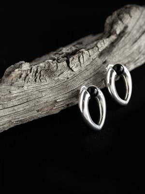 Modern teardrop earrings handcrafted in .925 sterling silver. These elegant pieces feature interchangeable 8mm natural gemstone spheres for multiple looks. Handcrafted in Los Angeles. Length: 30mm Weight: 6g each Closure: Post Back Closure.