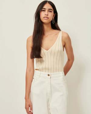 Tank top in a blend of rib knit, openwork and mesh stitches. The cotton used to make this product is GOTS-certified organic cotton sourced from organic farming. It is cultivated with respect for people and the environment, without fertilisers or chemical additives. Deep V-necklines in the front and back. All-over openwork and rib-knit detailing. 100% Cotton