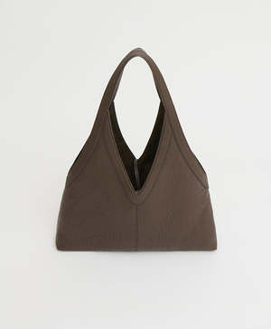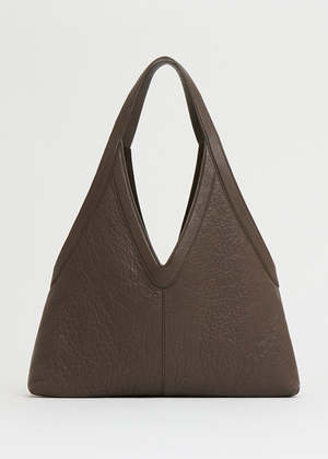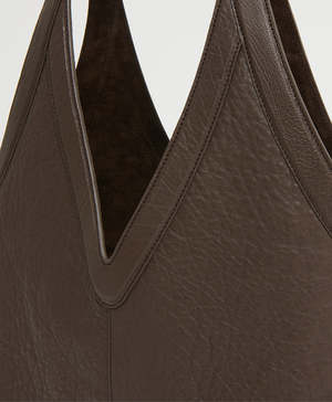 Suede-lined Italian leather bag in an oversized graphic shape designed to tote all your everyday belongings. For added versatility, the bag features interior ties that can be knotted to give the bag more structure or left open for a slouchier silhouette. Fits up to a 16" MacBook Pro. Measurements: Dimensions: 7.8" W x 4.3" D x 16.5" H Double handles, 13.4" drop Made in Italy. Materials: Shell: 100% Italian stamped lambskin leather Lining: 100% calf suede Care: A leather conditioner is recommended for hydration. Avoid exposure to abrasive surfaces and store the item in its dust bag.