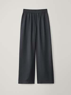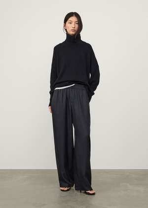 In woven silk twill, these wide leg track pants have a relaxed full-length fit through the leg with a mid-rise, elasticated pull-on waistband. Fabrication: Woven Silk Twill Composition: 100% silk For Lisa Yang silk pieces, professional dry-cleaning is recommended.