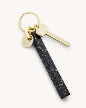 A classic bar keychain, handmade from fine Italian acetate with gold hardware. Subtle enough to be chic, bold enough to be found even in the darkest depths of the largest bag. - Total measurement: 5 inches long - Bar width: 0.375 inches - Ring diameter: 1 inch - Italian acetate