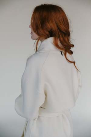 DESCRIPTION This wool coat is perfect for spring. It features a wrap front, with slide slit detailing. Perfect for layering, a casual to chic staple for effortless styling.