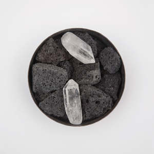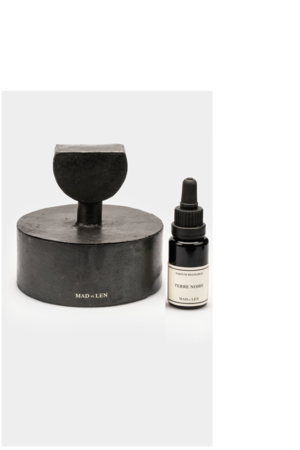 Pot Pourri rocks are a stylish way to scent your home! Lava rocks with unique crystals in a blackened hand-forged iron with gold leaf applique branding. All labels are hand signed with date of production in their atelier in France. Includes a 15mg glass bottle of perfume - alcohol free. All Mad et Len products are vegan, cruelty-free, handcrafted, made in France. Terre Noire scent: Primal Damp earth, Barky, Earthy, Rich Humus Soil, Mineral Note, Ancient woods of Petrified Pine, Rare Aged Oakwood, Cold Mushrooms. TO USE: Remove lid, drop three to ten drops of fragrance on stones depending upon vessel size and scent preference, set lid aside. The lid may be placed partially over the vessel to control scent projection, removed completely, or temporarily. WARNING: Avoid contact with skin. For skin contact, wash immediately with water and soap. For eye contact, flush eye with water repeatedly. 12D x 5H cm Made in France