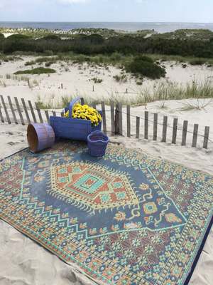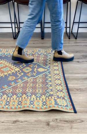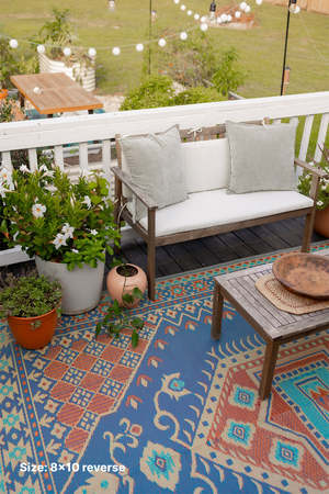 The Turkish Plum Mat by Mad Mats is meticulously crafted with authentic Turkish rug design inspiration. Intricately woven from 100% recycled plastic, this mat is UV protected, fade-proof, and comes with a one-year color guarantee. Because these rugs are handmade, pattern, color, and size may vary slightly.