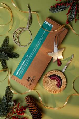 This beautiful set of three ornaments completes your holiday decorating, with each piece handcrafted by refugee artisans. These ornaments represent hope and resiliency and are a symbol of solidarity with the refugee community. This set includes: Silver Moon Crafted by Afghan refugees living in India. This detailed crochet work takes the shape of a crescent moon, one of the most enduring motifs throughout time. For many, the moon represents progress in life and new beginnings. Rising Sun Crafted by Burundian and Congolese women living in Rwanda. This sweetgrass piece is handwoven using a time-honoured weaving technique. The design represents the additional strength and persistence needed to rise again after being forced from home. Shooting Star Crafted by Malian refugees living in Burkina Faso. This star is a shining example of the metalworking skills of Tuareg artisans. For these nomadic pastoralists, who traditionally live in the Sahara Desert, stars in the night sky are navigational tools. Note: These products are handmade and there will be slight variations in shape, size, and colour.