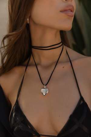 Discover the Lace It style from Mademoiselle Jules: a black suede cord necklace. Add a charm for a bold look. Description: - The necklace measures 60". - Shown with the "Bubble Heart" charm (charm not included). - Composition: Made of suede leather. - Care: To preserve your jewelry, avoid direct contact with water, perfumes, creams/lotions. Store the jewelry in its original pouch when not worn.