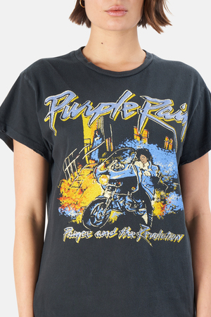 - Color: Coal Pigment - Cotton jersey fabric - Relaxed fit - Lightly distressed - 100% Cotton - Made in USA - Style #: MWPR006T - Machine wash cold | Women's MadeWorn Rock Prince Purple Rain T-Shirt in Coal Pigment
