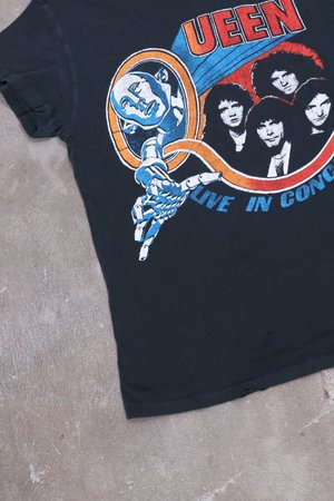 Made Worn Queen Live in Concert in Pigment Black. Crew neck. Each tee is uniquely distressed and screen printed for a vintage inspired aesthetic. Details - Regular fit. True to size, take your normal size. (Note: If you want a more fitted look, size down one size.) - 100% Cotton - Machine wash on delicate. We recommend putting it in a small laundry bag. Lay flat to dry. - Made in Los Angeles