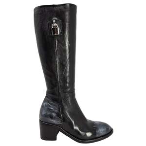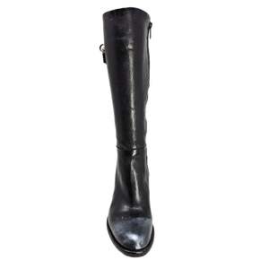 Step in style with the Madison Maison Black Tall Hand Rubbed Lock Boot. Hand rubbed with metallic polish, these boots feature unique toe and heel lock hardware by Joan Hornig. Designed in house by Madison Maison, these boots are the perfect blend of fashion and function.