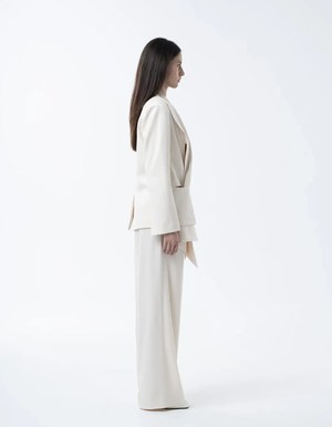 Medium-length jacket featuring cut-outs in the front with wrapped texture. Materials: 70% Cotton, 30% Polyester. Details: - Panna - Cut-out details in front - Long collar scarf shape.