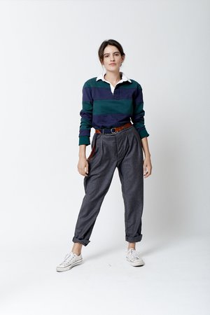 THE HEPBURN Time to retire the skinny jeans. The perfect pleated trouser with a slightly tapered leg and finished with a 1.5 inch cuff. And ladies, don't be afraid to channel your inner Kathereine. NOTE: Women should order one (1) size down from their usual size. For example, if you normally wear a small, order an extra small. Please see our size chart for measurements. Made in the highest quality super soft wool from American Woolen Company. American Woolen Company has 3rd and 4th generation employees who have passed down their craft over the decades. There is dedication to creating a superior finished product during every step. It is precisely these skills and knowledge, along with a meticulous attention to detail, that make their fabrics the finest in the world. See their story here : www.americanwoolen.com Made in downtown Los Angeles. Fabric made in the USA 100% Wool 32" inseam on all sizes Limited quantities available. MADE IN USA We believe in Slow Fashion. Our garments are meant for wear, not disposal. Slow Fashion is transparent so you know where your clothes are coming from and items are often handmade by artisans.
