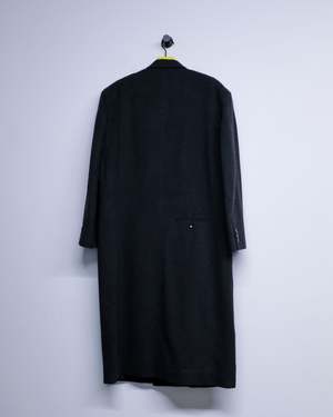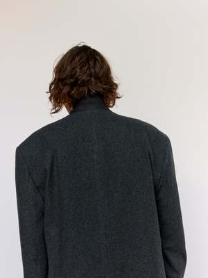 Heavy weight coat in a boxy, slightly relaxed fit. Features a double-breasted button closure and a single rear welt pocket with a pearl button. Finished with a multilayer lining. Virgin wool blend, lined in a wool-viscose blend. Model is 6 ft wearing a size Medium.