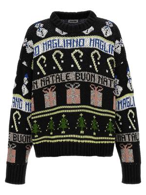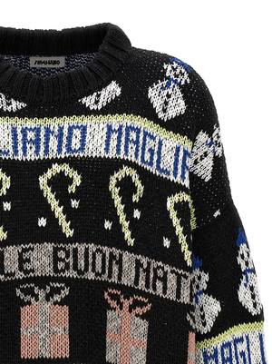 'Buone feste' cotton blend sweater with all-over contrast intarsia and crew neck. Composition: 50% cotton, 50% acetate.