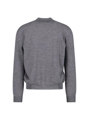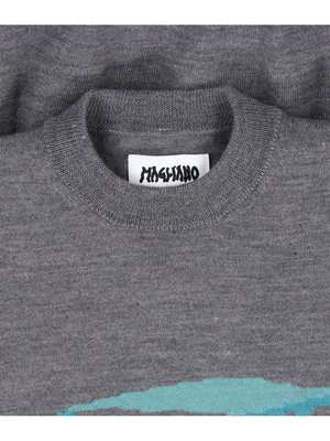 Magliano 'Pandino' gray wool sweater with ribbed crew neck, contrast multicolor logo2 on the front, ribbed trims, and straight elastic hem. Composition: 100% Wool.
