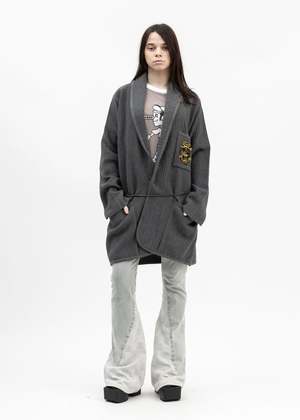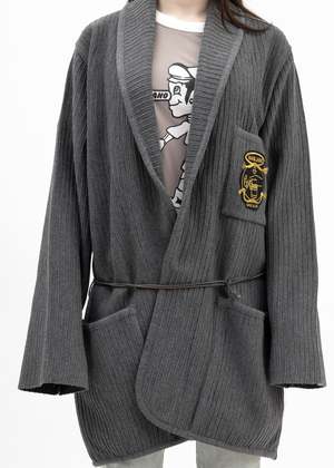 MAGLIANO cardigan in brown, wool-acrylic blend, paneled knit construction, shawl collar, long sleeves, front wrap closure & self-tie drawstring belt, chest patch pocket & logo2 embroidery, side patch pockets, straight hem, relaxed fit. Made in Italy 50% Virgin Wool 50% Acrylic Standard Sizing Model is 5'7" (172 cm), 98 pounds (44kg), usually wears S in tops. A size 25 in denim and S in trousers. Size 8 in shoes. FINAL SALE