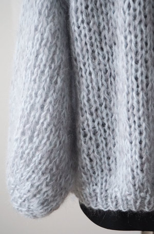 composition /50%mohair, 32polyamide,18% wool colour / Arctic blue & silver melange made in / Bulgaria Maiami from Berlin presents hand-knitted sweaters and knit accessories with a modern and special impression, achieved through the combination of colours and materials as well as the placement of motifs.Maiami's one-of-a-kind knitwear is made by hand with love. In addition to their signature "chunky" knitwear, Maiami has started to include higher quality materials including angora and cashmere since 2005 autumn-winter collectsion, which are transformed into more lighter and airier knitwear.Using yarns from Germany, Spain, Switzerland and Austria, everything is hand-knitted in Berlin, South Germany, Italy and Bulgaria.