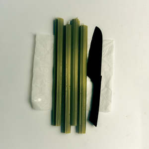 The Celery Set Tapered Candles by Maison Balzac are inspired by an imaginary garden where celery is a favorite for serving small snacks to guests. These playful candles are designed to add a whimsical touch to your dinner table. Sold as a set of 4. Each candle measures 25 cm in length and offers approximately 9 hours of burn time. Made from 100% plant based stearin wax with a cotton wick (wax RSPO certified). Candle base fits in a 2 cm diameter candleholder. Please note: Due to the nature of the wax, candles may develop a soft white film known as blooming. This is a natural process and does not affect the quality or burning of the candle. Always place in a candleholder away from draughts while burning. Do not move candle once lit, and never leave a burning candle unattended. Trim wick to 5mm before each use. Always burn in a well ventilated area, and never burn for more than 2 hours at a time.