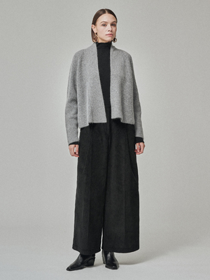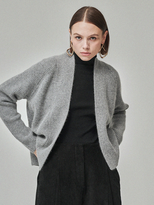 Premium raccoon blend composed of 15% raccoon and 10% superfine wool offers lightweight warmth and a luxurious, soft hairy texture. Silky viscose rayon drape provides a smooth surface and natural flow, creating an elegant silhouette when worn. The minimal open-front design features a buttonless, flowing open style for versatile styling options. Lightweight yet structured silhouette can be worn as an outer layer or layered as an inner piece, offering high versatility while naturally flattering the figure. A refined look is achieved solely through the texture and drape of the fabric, without excessive detailing. Available in one size. Raccoon 15%, Super Fine Wool 10%, Nylon 45%, Viscose Rayon 30%. Made in Korea. Dry cleaning only.